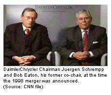 เมื่อ ค.ศ 2000 เจอร์เก็น ชรึมพ์ ซีอีโอ ของเดมเลอร์ไครสเล่อร์ได้กล่าวต่อสาธารณะภายในหนังสือพิมพ์เยอรมันว่า เขามุ่งหวังจะให้ไครสเล่อร์เป็นบริษัทลูกของเดมเล่อร์อยู่เสมอ ถ้อยแถลงของการรวมบริษัทอย่างเท่าเทียมกันเป็นเหตุผลทางจิตวิทยาอย่างหนึ่ง เพื่อที่จะได้รับการสนับสนุนจากคนงานไครสเล่อร์และชาวอเมริกันเท่านั้น แต่การรวมบริษัทอย่างเท่าเทียมกันไม่เคยเป็นความจริงได้