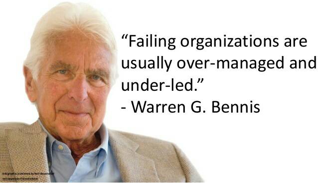 เราต่างยอมรับว่าปีเตอร์ ดรัคเกอร์คือ บิดาของการบริหาร  วอร์เร็น เบนนิสคือ บิดาของความเป็นผู้นำ เขาได้กล่าวไว้ครั้งแรกว่า ความเป็นผู้นำไม่ใช่กลุ่มของคุณสมบัติทางพันธุกรรม แต่เป็นผลจากกระบวนการตลอดชีวิตของการค้นพบตัวเอง กระบวนการนี้สามารถทำให้บุคคลกลายเป็นมนุษย์
