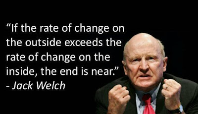 แจ็ค เวลซ์ ได้ลงจากตำแหน่งซีอีโอของเจ็นเนอรัล อีเล็คทริค และลาออกไป เมื่อ ค.ศ 2001 ภายหลังจากการเป็นซีอีโอยาวนานถึง 22 ปี เขาได้รับเงินชดเชย 417 ล้านเหรียญ เงินชดเชยมากที่สุดภายในประวัติศาสตร์  มรดกยั่งยืนที่สุดของแจ็คเวลซ์ที่ได้ทิ้งไว้แก่จีอีคือ การรับเอาการเปลี่ยนแปลงไว้เป็นวิถีทางของชีวิต ความต้องการการเปลี่ยนแปลงอย่างสม่ำเสมอ แจ็ค เวลซ์ เชื่อว่าบริษัทต้องเรียนรู้และสร้างแหล่งที่มาของข้อได้เปรียบทางการแข่งขันใหม่ ความสามารถของบริษัทที่จะเรียนรู้และถ่ายทอดการเรียนรู้ให้เป็นการกระทำอย่างรวดเร็วคือ ข้อได้เปรียบทางการแข่งขันในที่สุด เขาพูดถึงความสำคัญของข้อได้เปรียบทางการแข่งขันอยู่เสมอว่า ถ้าเราไม่มีข้อได้เปรียบทางการแข่งขัน อย่าแข่งขันลย   ธุรกิจภายในอุตสาหกรรมต้องเปลี่ยนแปลงและสร้างตัวเองขึ้นมาใหม่ให้รวดเร็วกว่าการเปลี่ยนแปลงของอุตสาหกรรม   ด้วยคำพูดอีกอย่างหนึ่งข้อได้เปรียบทางการแข่งขันได้เกิดขึ้นจากการใช้การเปลี่ยนแปลงสร้างโอกาสใหม่ให้รวดกว่าคู่แข่งขัน ถ้าอัตราการเปลี่ยนแปลงภายนอกนำหน้ากว่าอัตราการเปลี่ยนแปลงภายในแล้ว จุดจบใกล้เข้ามาแล้ว