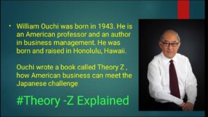 เมื่อ ค.ศ 1980 วิลเลียม อูชิ นักวิชาการบริหาร มหาวิทยาลัยยูซีแอลเอ ได้เชื่อมต่อช่องว่าง ระหว่างการบริหารแบบอเมริกันที่เสื่อมถอย และการบริหารแบบญี่ปุ่นที่กระหึ่ม เขาเขียนหนังสือเล่มหนึ่งชื่อ “Theory Z : How American Business Can Meet The Japanese Challenge” ทฤษฎี Z ได้ติดลำดับหนังสือขายดีที่สุดของนิวยอรคไทม์และได้ติดลำดับหนังสือธุรกิจ ที่ได้ถูกอ่านอย่างแพร่หลายมากที่สุดของห้องสมุดทุกแห่งภายในอเมริกา