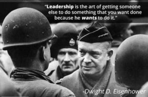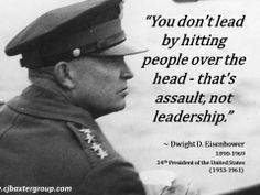 ไอเซนฮาวด์เชื่อว่าความเป็นผู้นำ ไม่ได้เกิดขึ้นจากการตะคอกคำสั่งหรือการบังคับการกระทำ เราไ่ม่สามารถนำด้วยการตีหัวบุคคล นั่นคือการทำร้ายไม่ใช่ความเป็นผู้นำ ความเป็นผู้นำคือศิลปของการให้บุคคลบางคนทำบางสิ่งบางอย่างที่เราต้องการทำ เพราะว่าเขาต้องการทำ ระหว่างสงครามโลกครั่งที่สอง ข้อพิสูจน์ความสำเร็จของวิธีการนี้คือ ความประทับใจต่อการเป็นประธานาธิบดีอเมริกาของไอเซนฮาวด์จะเป็นเวลาที่สงบและไม่มีการคุกคาม