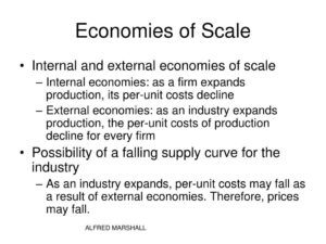 หลายโดยนักเศรษศาสตร์ เช่น อัลเฟรด มาร์เเชล ภายในปลายศตวรรษที่สิบเก้า เขาได้ให้รากฐานทางทฤษฎีและการปฏิบัติเพื่อความเข้าใจต้นทุนลดลงเมื่อผลผลิตขึ้นเพิ่มอย่างไร