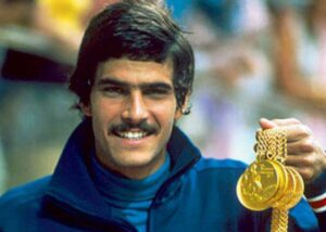 มารค สปิตซ ์นักว่ายน้ำอเมริกัน ได้ชัยชนะเหรียญทองเจ็ดเหรียญภายในโอลิมปิค 1972 เมื่อเขาได้ถููดติดต่อจากอดีดาสภายในหมู่บ้านโอลิมปิคของ