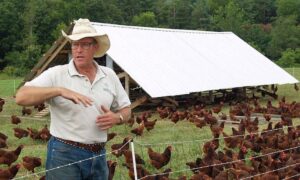 ออร์แกนิคกลายเป็นถ้อยคำหลวมมากที่บุคคลไม่เข้าใจอย่างแท้จริงมันได้ถูกประมวลโดยรัฐบาลในขณะนี้ อาหารอุตสาหกรรมสามารถเข้าไปสู่ตลาดภายใต้หน้ากากของออร์แกนิค ภายในโพลีเฟซ ฟาร์ม เรากินออร์แกนิคที่เราวางสัตว์บนหญ้าที่สดใส และย้ายมันไปรอบตลอดเวลาเราดำเนินการฟาร์มด้วยแรงงานเพื่อนบ้านบุคคลรับรู้ว่าไม่มีระบบใดสามารถควบคุมความซื่อสัตย์ได้ นั่นคือทำไมเรามีนโยบายเปิดประตู 24 ชั่วโมงต่อวัน 7 ว้นต่อสัปดาห์ 365 วันต่อปีบุคคลใดก็ตามถูกต้อนรับมาเยี่ยมโพลีเฟซ ฟาร์ม ได้ทุกเวลา มองเห็นอะไรก็ตาม ที่ไหนก็ตาม ความซื่อสัตย์ถูกมั่นใจได้ด้วยระดับของความโปร่งใสนี้เท่านั้น วัวของเราถูกย้ายตลอดเวลาไปสู่คอกที่สดใส ดังนั้นเราได้เลียนแบบ แบบแผนของสัตว์กินหญ้าภายในธรรมชาติ มันถูกย้ายไปจากปุ๋ยคอกเมื่อวาน เราใช้ธรรมซาติ แบบแผนการย้าย การกลุ้มรุม การตัดหญ้าเป็นแม่แบบ ดินที่อุดมสมบูรณ์ของโลกได้ถูกสร้างด้วยสัตว์กินหญ้า การกินหญ้านี้ทำให้หญ้าเจริญเติบโตผ่านวงจรของมัน ถ้าบุคคลทุกคนปฏิบัติแบบแผนนี้ เราแยกจากคาร์บอนทุกอย่างที่ระเหยจากอุตสาหกรรมได้อาหารที่ดีควรจะมีสุขภาพตั้งแต่ทุ่งหญ้าไปสู่ส้อม เรายืนอยู่ที่นี่ท่ามกลางไก่จำนวนมากที่ไม่มีกลิ่น โมเดลการผลิตอาหารที่ดี ไม่ได้ผลักดันการเปลี่ยนแปลงภูมิทัศน์ สัตว์ปีกทุ่งหญ้าเลี้ยงสัตว์เป็นอะไรที่เรามีชื่อเสียงมากที่สุด เราไม่ได้เรียกมันการปล่อยอิสระ เราเรียกมันทุ่งหญ้าเลี้ยงสัตว์ ไก่ปล่อยอิสระส่วนใหญ่อยู่บนกองสกปรก นั่นเป็นตรงที่เราแตกต่างจากการดำเนินงานที่ไม่มีโครงสร้างพื้นฐานเคลื่อนย้ายให้มันพื้นที่สดใสทุกวัน ตลอด 44 ปี บนขอบทางตะวันตกของหุบเขาเชอนานโด เวอร์จิเนีย สามรุ่นของซาราทิน ได้เลี้ยงปศุสัตว์ด้วยหญ้าบนที่ดินขรุขระเนินเขาโดยไม่มีออนซ์หนึ่งของปุ๋ยเคมีหรือกำมือของเมล็ดพันธุ์ ภายในการสัมผัสดินอย่างใกล้ชิด ถดูกาล และตัวพวกเขาเอง และการใช้วิธีการเลียนแบบธรรมชาติ ผลลัพธ์คือ ทุ่งที่เขียวชอุ่มของความเขียวผิดธรรมดา – แม้แต่ภายในหิมะละลายเปียกชุ่มของฤดูหนาวตอนเช้า และหมู ไข่ และสัตว์ปีกของความสะอาดผิดธรรมดา และรสชาติดีอย่างไม่น่าเชื่อโจ ซาลาทิน อายุ 65 ปี เขาไม่ได้ติดใจที่ถูกเรียกว่าคอมมิวนิสต์ เขาอธิบายตัวเขาเองเป็นเกษตรกรบ้าบิ่น นายทุนนิยม นักสิ่งเเวดล้อม นักเสรีนิยม คริสเตียน เขาเป็นนายทุนนิยมที่ไม่มีเป้าหมายการขาย และจะไม่จัดส่งอาหารเลยพ้นฟูดเชดท้องที่ของเขา เขาเป็นคริสเตียนที่ให้ ความสำคัญต่อสุขภาพทางสิ่งแสดล้อม และเข