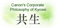 กระทบที่เราสร้างต่อสังคมและสิ่งแวดล้อม นั่นคือทำไมตั้งแต่การก่อตั้งของเรา ปรัชญาบริษัทของแคนนอนเป็นเคียวไซ เรานิยามว่า บุคคลทุกคน ไม่มองเชื้อชาติ ศาสนา หรือวัฒนธรรมม มีชีวิตอยู่อย่างสามัคคี และทำงาน