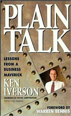 เค็นเนธ ไอเวอร์สัน ได้กล่าวว่าที่จริงแล้วเรามีปัญหาสามอย่างภายในอุตสาหกรรมเหล็กคือ การบริหาร การบริหาร และการบริหาร หนังสือ Plain Talk ของเขา ได้สรุปปรัชญาและสไตล์การบริหารที่เป็นรากฐานความสำเร็จของนูคอร์ไว้ว่า ข้อหนึ่งการมีระดับการบริหารให้น้อยที่สุด ข้อสองสายงานสนับสนุนต้องมีน้อยที่สุด และห้ามมีชื่อตำแหน่งผู้ช่วย ข้อสามการกระจายอำนาจการตัดสินใจไปสู่ระดับล่างสุด และข้อสี่การใช้สิ่งจูงใจกระตุ้นบุคคลให้เพิ่มประสิทธิภาพและกำไร