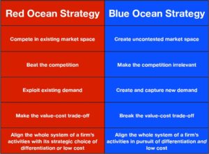 เราจะมีความเป็นได้อยู่เสมอที่บริษัทจะอยู่ภายใต้การคุกคาม โดยปรกติสถานการณ์นี้จะเกิดขึ้นเมื่อบริษัทกำลังดำเนินงานอยู่ภายในตลาดที่อิ่มตัวเรียกกันว่า ” ทะเลสีแดง”เมื่อเรามีโอกาสของการเจริญเติบโตอย่างจำกัด บริษัทจะพยายามและมองหาเส้นทางของการค้นพบธุรกิจใหม่ การเปิดตลาดใหม่ที่ยังไม่มีการแข่งขันเรียกว่า “ทะเลสี่น้ำเงิน” ทะเลสีน้ำเงินจะมีอยู่เมื่อเรามีโอกาสของการทำกำไรที่สูง