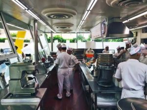 เส้นโค้งที่ใหญโต โครงสร้างรูปแปดเหลี่ยม แผงที่กั้นกระจก ระหว่างห้องครัวและพื้นที่จัดส่ง สถานที่จะถูกรักษาให้สะอาด บุคคลได้ถูกอบรมที่จะเกี่ยวพันอย่างเป็นมิตรกับลูกค้าของพวกเขา