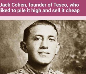 ภายในแฮคนี่ย์ ขายของชำเหลือใช้ที่ได้เจริญเติบโตไปสู่ซุปเปอร์มาร์เก็ตที่ยิ่งใหญ่ ชีวิตของผู้ก่อตั้งของอาณาจักรซุปเปอร์มาร์เก็ตเทสโกจะเริ่มต้นภายในสถานการณ์ไม่มีทีท่าว่าจะดี เเจ็ค โคเฮนเกิดภายในครอบครัวใหญ่ที่ไวท์ชาเปล ลอนดอน บิดาของเขาเป็นชาวยิวอพยพจากโปแลนด์ ทำงานเป็นช่างตัดเสื้อ เขาออกจากโรงเรียนเมื่ออายุ 14 ปี และจะเป็นช่างตัดเสื้อฝึกหัดแก่บิดาของเขา แต่เขาจะไม่มีความสุขกับงาน แต่กระนั้นทักษะการตัดเสื้อเป็นประโยชน์แก่เขามาก เขาได้เข้าร่วมรอเเยล ไฟอิ้งก์ คอร์ป เมื่อ 1917 เขาได้กลายเป็นผู้สร้างผ้าใบเพื่อบอลลูนและเครื่องบินอื่น