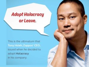 เราได้เคยอ่านเกี่ยวกับความพยายามของแซปโป้ส์ที่จะสอนวิธีการบริหารตนเองแก่บุคคลของพวกเขาหรือไม่ ร้านขายรองเท้าออนไลน์ได้ดำเนินการระบบการบริหารใหม่ที่น่าสนใจเรียกว่าโฮลาเครซี่ ถ้าเราได้เคยพิจารณาทำให้โครงสร้างการบริหารแบนลง