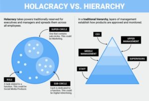 เราได้ทำการเปลี่ยนแปลงจากโครงสร้างลำดับชั้นตามปรกติไปเป็นระบบที่เรียกว่าการบริหารที่ไร้ผู้บริหาร การทำให้บุคคลกระทำเหมือนกับผู้ประกอบการมากขึ้น และสั่งการงานของพวกเขาด้วยตัวเอง แทนการรายงานไปยังผู้บริหารที่จะบอกพวกเขาให้ทำอะไร การบริหารที่ไร้ผู้บริหารจะยกเลิกชื่องานที่เป็นทางการ ผู้บริหาร และลำดับชั้นสมัยเดิม ด้วยการใช้ลำดับของ “วงกลม” ที่ทับซ้อนกัน บุคคลสามารถมีบทบาทที่แตกต่างกันหลายอย่าง เป้าหมายคือการเพิ่มระดับของความรับผิดชอบ เนื่องจากบุคคลจะต้องรับผิดชอบต่อเพื่อนร่วมงานของพวกเขาทุกคนไม่ใช่ผู้บริหารคนเดียว และโปร่งใสเพื่อที่จะยุติต้นตอของความตึงเครียดอย่างรวดเร็วและเปิดเผยให้รู้กัน