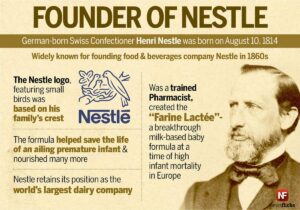 เนสท์เล่ ได้ถูกก่อตั้งเมื่อ ค.ศ 1867 โดยอองรี เนสท์เล่ นักเคมีเยอรมัน เขาจะเป็นนักคิดค้น “ฟารีน แลตเต้” : แป้งกับนม ผลิตภัณฑ์ทำจากนมและธัญพืช การรวมกันของนมวัว แป้วข้าวสาลี และน้ำตาล ที่ช่วยรักษาชีวิตของทารกที่ไม่สามารถดูดนมจากแม่ได้