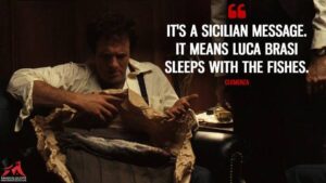 จนกระทั่งเขาได้จบนิยายกอดฟาเธอร์ และได้กลายเป็นหนังสือขายดีที่สุดทั่วโลก ทุกสิ่งทุกอย่างภายในหนังสือมาจากจินตนาการ หรือผ่านการวิจัยเหตุการณ์เอกสาร และไม่มีรายงานทางการของหัวม้าตัดขาด ณ จุดนั้น แม้ว่าเรามีหลายกรณีเลียนแบบนับแต่นั้นมาแม้ว่ามันเป็นหัวม้าจริง แผนคือใช้หัวม้าปลอม แต่ผู้กำกับฟรานซิส ฟอร์ดคอปโปลา ไม่พอใจกับหัวม้าปลอม ดังนั้นทีมถ่ายทำได้ค้นพบว่าจะมีม้าถูกวางกำหนดเวลาไปฆ่า ณ ผู้ผลิตอาหารหมา ดังนั้นหัวม้าจริงมาจากโรงฆ่าสัตว์ ตรงที่ม้าได้ถูกฆ่าเพื่อเป็นอาหารหมา ทีมถ่ายทำได้ไปที่บริษัท เลือกม้าที่คล้ายคลึงกับม้าแข่งของแจ็ค วอลทซ์ และได้ขอเมื่อเวลามาถึง ภายหลังจากนั้นไม่นาน บริษัทได้ส่งกล่องด้วยหัวม้าห่อภายในน้ำแข็งมาให้เพื่อการถ่ายทำฉากนี้ฟรานซิส ฟอร์ด คอปโปลา รายงานว่าเขาได้รับจดหมายโกรธมากจาก นักกิจกรรมสัตว์เกี่ยวกับหัวม้าที่ได้ถูกพบบนเตียงนอนของแจ็ค วอลท์ซ์พวกเขาคิดว่าผู้สร้างภาพยนตร์ได้ฆ่าม้าเพื่อฉากนี้ภายในกอดฟาเธอร์ ถ้อยคำ “มันเป็นข้อความซิซิลี” มันหมายความว่า”ลูคา บราซี นอนกับปลา” คำพูดอ้างอิงนี้ได้อ้างถึงประเพณีเก่าแก่ เมื่อบุคคลบางคนได้ถูกฆ่า เสื้อผ้าของพวกเขาจะถูกห่อรอบปลา แล้วห่อกับกระดาษ และส่งไปยังมาเฟีย การส่งไปนี้แสดงว่าบุคคลตายเเล้วและอยู่ที่ก้นของทะเล ภายในภาพยนตร์กอดฟาเธอร์ข้อความซิซิลีเป็นการเตือนหรือการข่มขู่ลูคา บราซี นอนกับปลได้ถูกกล่าวโดยปีเตอร์เคลเมนซาเมื่อครอบครัว คอร์ลีโอเน ไม่สามารถติดต่อลูคา บราซี ได้ พวกเขาสงสัยอะไรได้เกิดขึ้นต่อเขา และเขาอยู่ที่ตรงไหน คำตอบได้มาทันที พวกเขาได้รับห่อกระดาษสีน้ำตาลที่ลึกลับผูกเชือก ข้างในจะเป็นปลาสองตัวห่อภายในเสื้อเกาะกันกระสุน มันเป็นถ้อยคำของซิซิลี หมายความว่าลูคา บราซี ไปนอนกับปลา ด้วยคำพูดอีกอย่างหนึ่ง เขาได้ถูกทิ้งภายในทะเลเพื่อนอนหลับลึกถ้อยคำได้ถูกใช้เพื่อที่จะสื่อสารวาระสุดท้ายโชคชะตาของลูคา บราซี และผลตามมาอย่างรุนแรงของการทรยศ หรือความขัดเเย้งภายในโลกขององค์กรอาชญากรรม มันได้เน้นแก่นของเรื่องความเป็นจริงของความจงรักภักดี อำนาจ และความโหดร้าย ของชีวิตมาเฟียเป็นศูนย์กลางของภาพยนตร์ ภาพได้กระตุ้นความรู้สึกของทั้งความเคารพต่อความตายและความเย็นชา และความรุนแรงของกลุ่มอาชญากรรมในขณะที่ไม่มีใครเลยเลือกที่จะตายด้วยวิถีทางที่รุนแรงอย่างลูคาบราซี งานศพภายในทะเลจะเป็นประเพณีมายาวนานเป็นศตวรรษ แม้กระทั่งจนวันนี้ การโปรยกระดูกยังคงอยู่ที่ทะเลเป็น