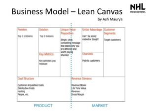 แคนวาส” ลีน แคนวาสจะเป็นแม่แบบแผนธุรกิจหนึ่งหน้า โดยแอช มาอูร์ยา เขาได้ปรับจากผ้าใบโมเดลธุรกิจของอเล็กซานเดอร์ ออสเทอร์วัลเดอร์ และการเพิ่มประสิทธิภาพแก่ลีน สตาร์ทอัพ ลีน แคนวาสจะทดแทนแผนธุรกิจที่ซับซ้อนด้วยโมเดลธุรกิจหน้าเดียวแผนธุรกิจต้องใช้เวลานานที่จะเขียนและไม่ค่อยจะทันสมัย และบุคคลอื่นจะไม่เคยอ่าน ลีน แคนวาสแก้ปัญหานี้ด้วยการใช้โมเดลธุรกิจหน้าเดียวที่ใช้ไม่ถึง 20 นาทีที่จะสร้าง ลีน แคนวาส จะใช้ผ้าใบโมเดลธุรกิจเป็นจุดเริ่มต้นบนลีน แคนวาส กล่องของปัญหา ทางแก้ปัญหา ตัวชี้วัดที่สำคัญ และข้อได้เปรียบที่ไม่เป็นธรรม จะทดแทนหุ้นส่วนที่สำคัญ กิจกรรมที่สำคัญ ทรัพยากรที่สำคัญ และความสัมพันธ์กับลูกค้าจากผ้าใบโมเดลธุรกิจ บุคคลหลายคนเห็นด้วยว่าการมุ่งปัญหาของลูกค้าของลีน แคนวาสจะมีประสิทธิภาพมากขึ้นภายในการนำทางเราที่จะสร้างโมเดลธุรกิจ และทางแก้ปัญหาที่จะตอบสนองความต้องการของลูกค้า การมุ่งที่การค้นพบข้อได้เปรียบที่ไม่เป็นธรรมของเราสามารถช่วยให้เราไปถึงโมเดลธุรกิจที่บรรลุความสำเร็จได้มากขึ้น และการยึดตัวชี้วัดที่สำคัญจะกระะตุ้นกระบวนการพัฒนาทำซ้ำทีละขั้นตอน ลีน แคนวาส ได้ใช้แนวคิดเก้ากล่องอย่างเดียวกัน ยกเว้นแต่ลีน แคนวาสได้ปรับปรุงเล็กน้อยที่จะให้สอดคล้องกับความต้องการ ความมุ่งหมาย และเงื่อนไขของลีน สตาร์ทอัพ กล่องจะนำทางเราด้วยขั้นตอนตามเหตุผลเริ่มต้นด้วยปัญหาของลูกค้าของเราผ่านไปถึงข้อได้เปรียบที่ไม่เป็นธรรมของเรา – มักจะเป็นกล่องที่ตอบได้ยากที่สุด