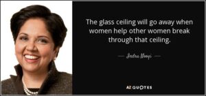 อินดรา นูยี ได้กล่าวว่า ฉันคิดว่าเรามีเพดานแก้ว แต่มันเป็นแก้ว และแก้วหมายความเราสามารถมองผ่านมัน และเราสามารถทำลายมัน แต่มันไม่ง่าย และเหตุผลที่มันไม่ง่าย เพราะว่าบุคคลกำลังไปช่วยเราทำลายเพดานแก้ว ภายในชีวิตของฉันทุกคนเป็นผู้ชาย ฉันคิดว่าเพดานแก้วจะสิ้นสุดลง เมื่อ