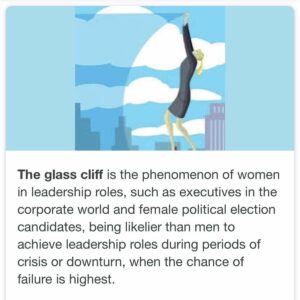 บุคคลทุกคนรู้เกี่ยวกับเพดานแก้ว แต่หน้าผาเเก้วเกี่ยวกับอะไร มันเป็นความคิดที่ผู้หญิงน่าจะถูกแต่งตั้งมากขึ้นที่จะนำบริษัทภายในเวลาวิกฤติ และเพราะว่าสิ่งนี้ พวกเธอมักจะถูกสร้างขึ้นที่จะล้มเหลว เมื่อเพดานแก้วได้แตกกระจายแล้ว เราไม่มีการรัับประกันว่าซีอีโอเพศหญิงจะไม่ก้าวขึ้นหรือถูกผลักลงจากหน้าผาแก้ว เพดานแก้วลำบากต่อผู้หญิงภายในความเป็นผู้นำที่จะทำให้แตกกระจาย แต่เรามีปรากฏการณ์อีกอย่างหนึ่งที่ผู้หญิงไม่กี่คนที่ทำลายเพดานแก้วต้องเผชิญ หน้าผาที่แหลมคมรู้จักกันว่าเป็น หน้าผาแก้ว