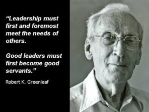 โรเบิรต กรีนลืฟได้ดึงความสนใจของเราด้วยถ้อยคำสองคำที่วัฒนธรรมอเมริกันระบุว่าตรงกันข้าม “ผู้รับใช้” และ “ผู้นำ” และได้รวมเข้าด้วยกัน