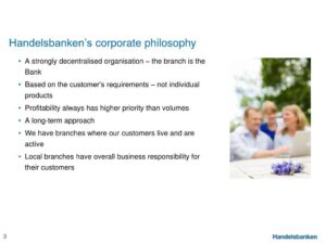 วัฒนธรรมบริษัทของฮันเดลสบังเกนมุ่งเน้นการกระจายอำนาจ ด้วยสำนัก