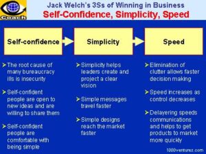 แจ็ค เวลซ์ ได้กล่าวถึง 3S ของการได้ชัยชนะภายในธุรกิจคือ ความรวดเร็ว ความเรียบง่าย และความเชื่อมั่นตัวเอง