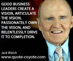 เอสบีอาร์ ได้ถามว่า อะไรทำให้เป็นผู้บริหารที่ดี แจ็ค เวลซ์ ได้กล่าวว่า ผมชอบถ้อยคำ “ผู้นำที่ดี” ผู้นำที่ดีจะสร้างวิสัยทัศน์ ถ่ายทอดวิสัยทัศน์ ลุ่มหลงวิสัยทัศน์ของตัวเอง และขับเคลื่อนอย่างไม่ลดละเพื่อที่จะบรรลุมัน เหนือสิ่งอื่นใด ผู้นำที่ดีจะเปิดกว้าง พวกเขาขึ้นบน ลงล่าง และอ้อมรอบองค์การของพวกเขาที่จะเข้าถึงบุคคล พวกเขาจะไม่ยึดกับช่องทางที่กำหนดไว้ พวกเขาจะไม่เป็นทางการ พวกเขาจะซื่อตรงกับบุคคล