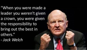 การบริหารของเขาได้กลายเป็นที่ยกย่องจนภายหลังเขาได้เกษียณจากเจ็นเนอรัล อีเล็คทริค แจ็ค เวลซ์ ได้เปิดตัวคณะบริหารธุรกิจออนไลน์ สถาบันการบริหารแจ็ค เวลซ์ โปรแกรมเอ็มบีเอของเขาได้ติดลำดับดีที่สุดแห่งหนึ่งโดยพรินซ์ตัน รีวิว เขาจะเป็นกูรูความเป็นผู้นำอย่างแท้จริง ดังนั้นอะไรที่เขาพูดเป็นจุดสำคัญที่จะเป็นผู้นำที่บรรลุความสำเร็จหรือ ความลับที่จะบันดาลใจและจูงใจบุคคลให้ทำดีที่สุดคืออะไร