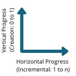 ความก้าวหน้าตามแนวดิ่งยากที่จะคาดคะเน เพราะว่าเราต้องจินตนาการบางสิ่งบางอย่างที่ยังไม่มีอยู่ ความก้าวหน้าในอนาคตสามารถสามารถคาดคะเนด้วยการมอง ณ ปัจจุบันจากมุมมองที่แตกต่างกัน