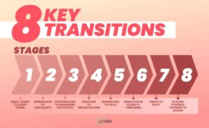 -เปลี่ยนแปลงอย่างสำคัญ มันไม่เป็นกฏควบคุมสิ่งเหล่านี้เมื่อคุณบลิทซ์สเกลลิ่ง คุณใช้สามัญสำนึกแทน ผมหมายถึงแนวทางที่ช่วยเหลือคุณตัดสินใจ และเรียนรู้การบินขึ้นไปบริษัทบลิทซ์สเกลลิงเปลี่ยนแปลงภายในรวดเร็วเหมือนกับมันเจริญเติบโตภายนอก ทีมเล็กกลายเป็นทีมหลายทีม ทีมหลายทีมกลายเป็นดิวิชั่น ดิวิชั่นกลายเป็นผลิตภัณฑ์แบ่งย่อยและต่างมีดิวิชั่นของมันเองการผ่านการเจริญเติบโตนี้สร้างความเครียดอย่างรุนแรงต่อการบริหารและผู้ก่อตั้ง เพื่อการอยู่รอด ทีมผู้บริหารต้องเต็มใจปรับและคิดค้นการบริหารภายในบริษัทอย่างไร การคิดค้นใหม่ความเป็นผู้นำของคุณ ผลิตภัณฑ์ของคุณ และองค์การของคุณ ณ ทุกระยะใหม่ของการขยายขนาด จะไม่ง่ายเลย ด้วยคำพูดของกูรูความเป็นผู้นำ มาร์แชล โกลด์สมิธ อะไรพาคุณมาที่นี่จะไม่พาคุณไปที่นั่น คุณต้องการประเภทที่แตกต่างกันของบุคคลต่อทีมตามมุมมองของรีด ฮอฟฟ์แมน เราจะมีสามระดับแตกต่างกันของการขยายขนาดถูกต้องการเพื่อสตาร์ทอัพบรรลุความสำเร็จตลอดวงจรชีวิตของมัน คำพูดเปรียบเทียบที่เขาชอบใช้คือ ทหารเรือยึดชายหาด ทหารบกยึดประเทศ และตำรวจควบคุมประเทศ ทหารเรือเป็นบุคคลสตาร์ทอัพจัดการความสับสน และให้ข้อแก้ปัญหา ณ ที่นั้น ทหารบกเป็นบุคคลขยายขนาด รู้จะยึดครองอย่างรวดเร็ว และรักษาพื้นที่ เมื่อกองกำลังของคุณรีบออกไปจากชายหาดอย่างไร และนายตำรวจเป็นบุคคลที่รักษาความมั่นคง การทำให้ยั่งยืนเเละปลอดภัยบริษัทยักษ์ใหญ่โลกที่บรรลุความสำเร็จเหมือนเช่นอเมซอนและเพย์พาลสามารถวิวัฒนาการการบริหาร ณ แต่ละระยะของการเจริญเติบโต เราจะมีการเปลี่ยนแปลงที่สำคัญแปดอย่างต่อการนำทางบริษัทผ่านระยะของบลิทซ์สเกลลิ่ง