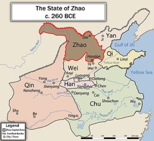 เมื่อกว่า 2,000 ปีก่อน หรือ ประมาณ 353 ปีก่อน คริสตศักราช ตรงกับสมัยเลียดก๊ก รัฐต่างๆโดยเฉพาะรัฐที่มีกำลังมากทั้งเจ็ด มีการต่อสู้เพื่อแย่งชิงดินแดนกันอยู่เสมอ รัฐเว่ย เป็นรัฐที่มีแสนยานุภาพสูง ได้ยกทัพไปตีรัฐเจ้า โดยปิดล้อมเมืองหันตัน (邯郸: hándān) เมืองหลวงของรัฐเจ้าผู้ครองรัฐเจ้าเจ้าจึงขอความช่วยเหลือจากรัฐฉี กษัตริย์รัฐฉีให้แม่ทัพเถียนจี้ (田忌 : tiánjì) ยกกองทัพไปช่วย เถียนจี้ คิดจะนำทัพไปช่วยรบที่เมืองหันตัน แต่ ซุนปิ้น (孙膑 : sūnbìn) เสนาธิการ ได้ให้คำแนะนำว่า การเอาชนะรัฐเว่ย ควรเลือกโจมตีที่จุดอ่อนของรัฐเว่ย เวลานี้รัฐเว่ยได้ระดมสรรพกำลังทั้งหมด ไปโจมตีรัฐเจ้า เมืองหลวงของรัฐเว่ย จึงขาดการคุ้มกันที่เข้มแข็ง ดังนั้นแทนที่จะยกทัพไปรบ ที่เมืองหันตัน เราควรยกทัพไปตีเมืองต้าเหลียง (大梁 : dàliáng) ซึ่งเป็นเมืองหลวงของรัฐเว่ย เมื่อเมืองหลวงถูกคุกคาม กองทัพเว่ยก็จะต้องถอนทัพจากเมืองหันตัน รีบกลับมาป้องกันเมืองต้าเหลียง สถานการณ์ของรัฐเจ้าก็จะคลี่คลาย และในขณะถอยทัพกลับ เรายังสามารถซุ่มโจมตี กองทัพของรัฐเว่ยได้อีกด้วย